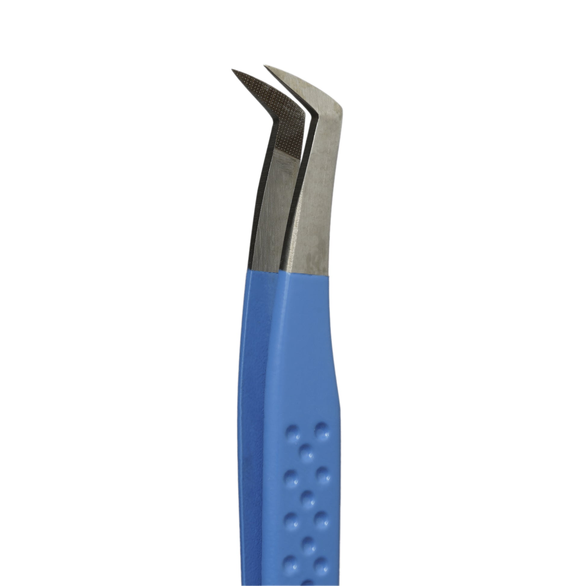 Our new line of tweezers have interlocking mechanisms in the inner blade of the tweezer head. They execute extremely preciously and specifically for fine and thin lashing.