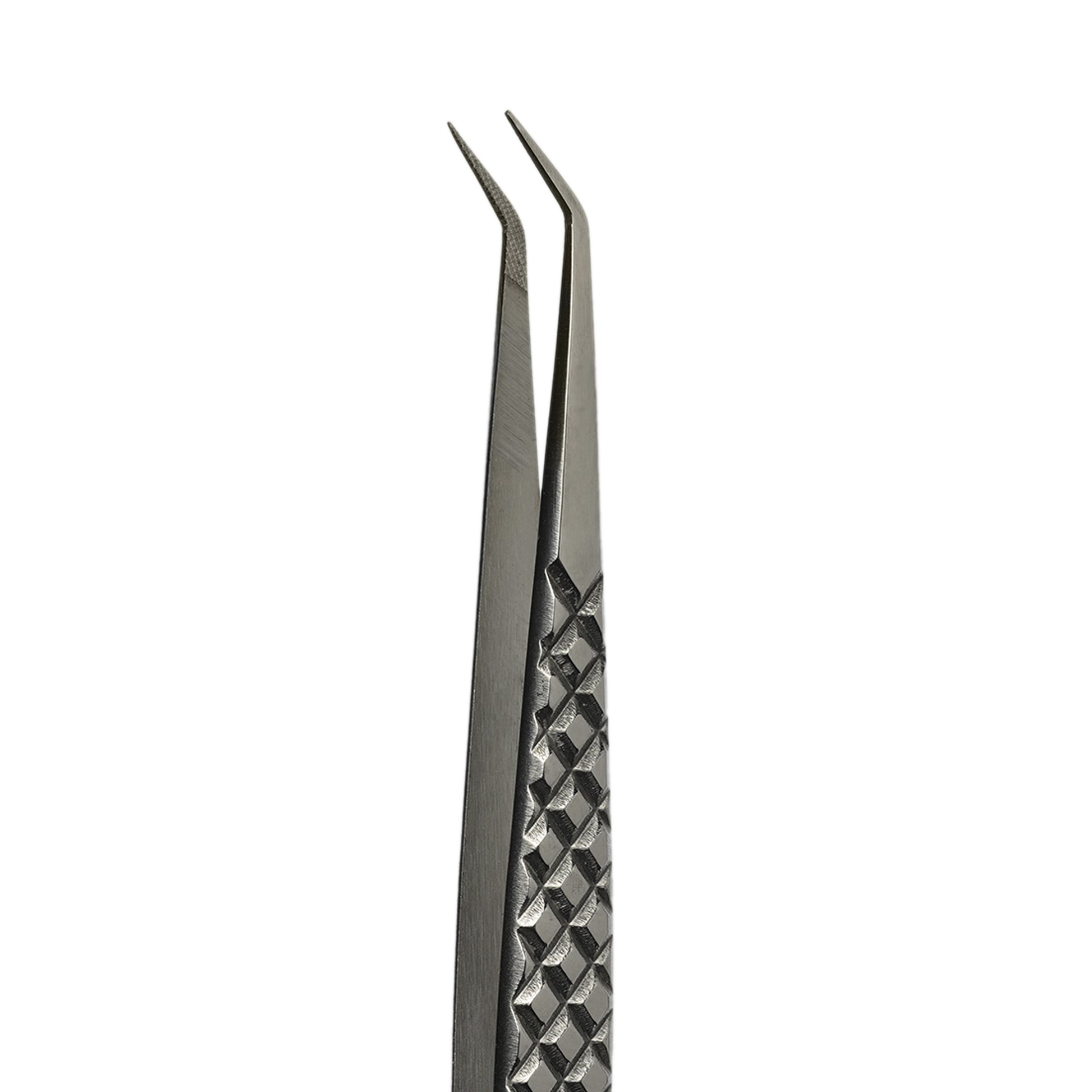 Made with medical grade materials, enhanced with diamond grip technology to decrease the chances of tweezers dropping or slipping