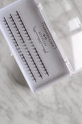 Premade 8D Fans D Curls are amazing volume lashes for both volume trained and untrained volume lash technicians! Our premade volume fans allow for an extremely easy pick up ( same technique as picking up classic lashes). They are heat bonded at the base which means no bulky bases and and a feather light volume fan! Pitch black in color.